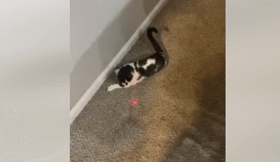 當(dāng)貓咪抓到激光點(diǎn)時(shí),可以用零食來(lái)獎(jiǎng)勵(lì)TA。