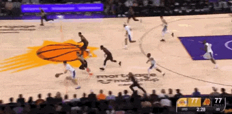太陽趁勢反擊,連續三分不中,狄龍拿球
