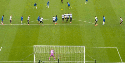 從慢鏡頭來(lái)看,里斯-詹姆斯的射門直入死角,而人墻里的吉馬良斯沒(méi)有起跳也讓里斯-詹姆斯的罰球繞過(guò)了人墻。