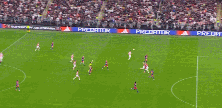 有一場比賽,巴薩在對手的瘋狂逼搶下陷入了困境,進攻屢屢受阻,防守也岌岌可危。就在所有人都感到絕望的時候,拉菲尼亞站了出來。他先是在防守端成功地斷下了對手的傳球,然后迅速發動反擊。他帶著球像一陣風一樣沖向對方的禁區,在面對多名防守球員的圍堵時,他靈活地變向、加速,最終成功地突破了防線,為隊友創造了一個絕佳的射門機會,幫助球隊扳平了比分。