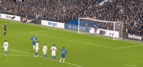 第56分鐘,桑切斯大腳出球,佩德羅插上來到禁區(qū),比約爾雙手推人,這一幕和切爾西的上一場(chǎng)比賽幾乎一模一樣,佩德羅倒在禁區(qū),裁判判罰點(diǎn)球。