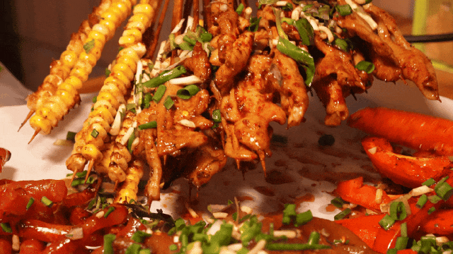 還有宜賓燒烤,那是屬于深夜的江湖。當夜幕降臨,街頭巷尾的炭火升起,把把燒在網上滋滋冒油,鼻筋的彈牙、五花肉的焦香,是無數年輕人打卡宜賓的理由。在這里,沒有什么煩惱是一頓燒烤解決不了的,如果有,那就兩頓。
